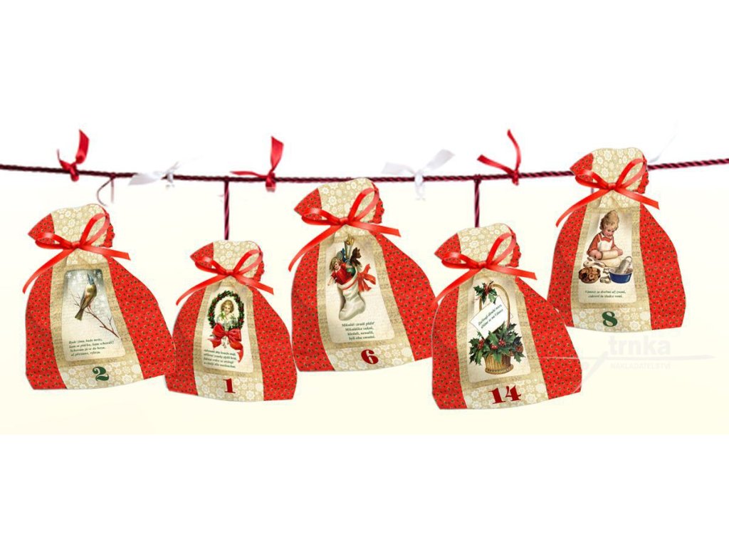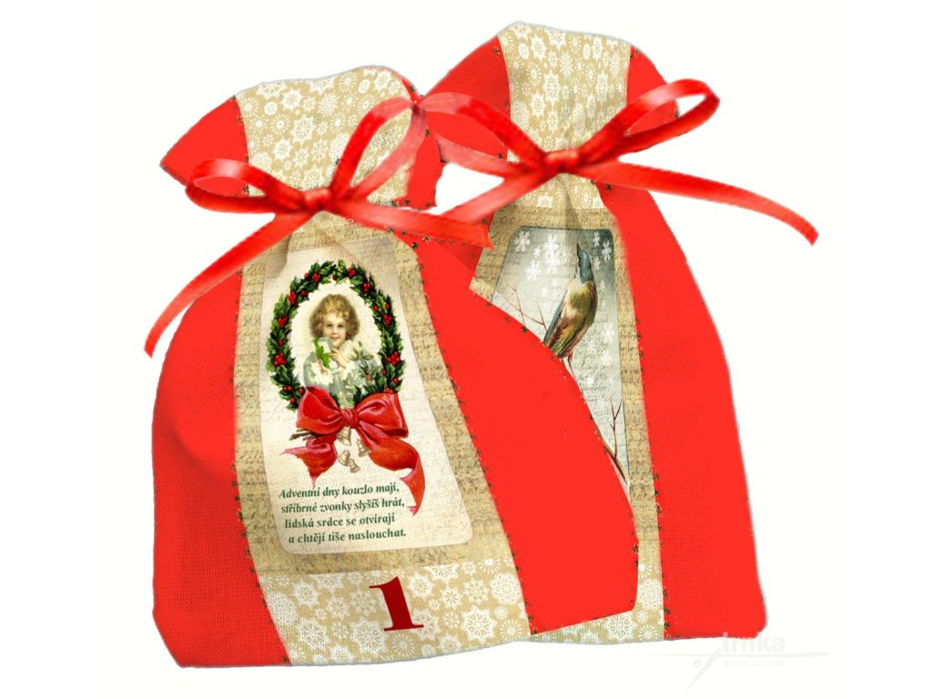 Adventní kalendář s básničkami - pytlíčky, červeno zelená