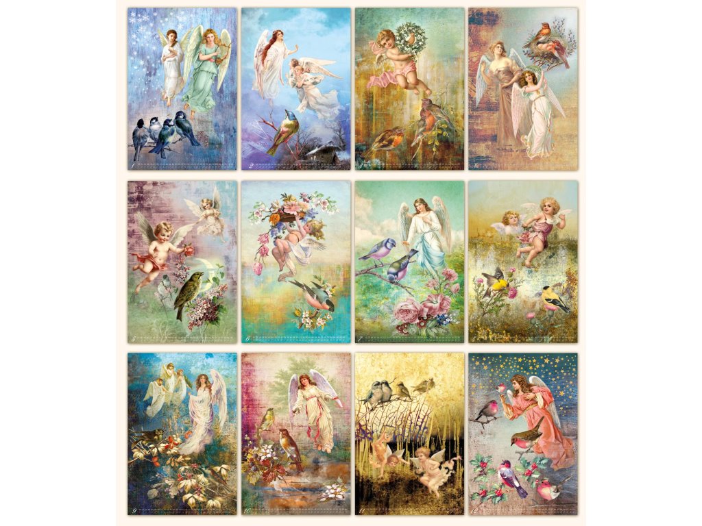 Kalendář přináší dvanáct poetických koláží spojujících andělské postavy s ptáky – symboly volnosti, hlasu přírody a křehké krásy. Společně vytvářejí nebeský sbor, který vypráví o radosti, naději i tichu mezi slovy.