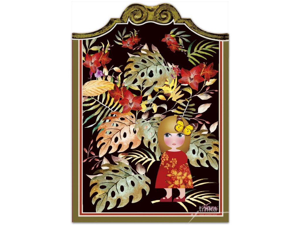 Originální koláže Kláry Trnkové jsou natištěny na dřevěné desce a slouží jako závěsná dekorace.