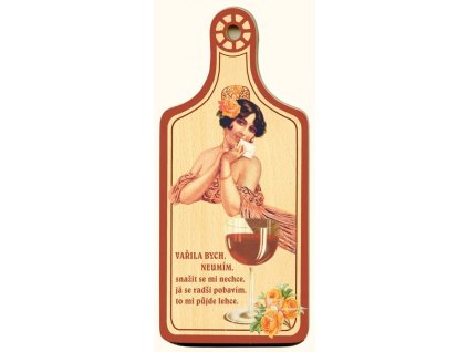 Vtipné starosvětsky laděné originální koláže Kláry Trnkové jsou doplněny nápisy ze starých vyšívaných kuchařek nebo reklam a natištěny na dřevěná prkénka. Jsou opatřeny dírkou k zavěšení a slouží jako závěsná dekorace do kuchyně nebo jídelny.