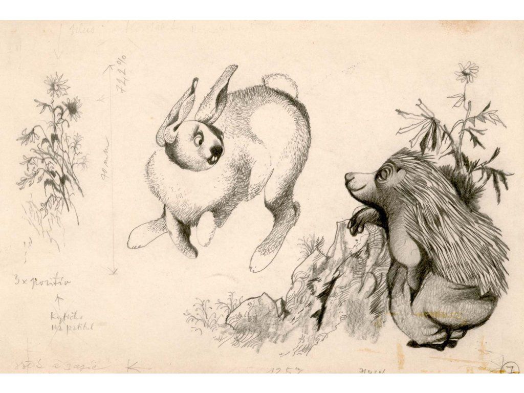 Ježek a zajíc - originální ilustrace Jiří Trnka