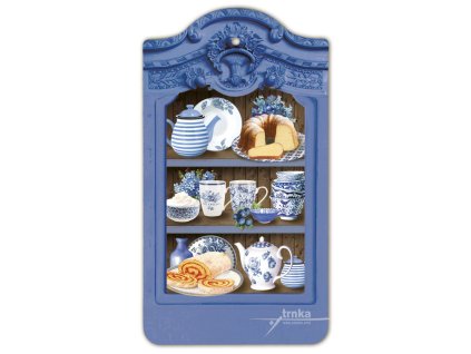 Originální koláže Kláry Trnkové natištěny na dřevěná prkénka, která slouží jako závěsná dekorace.