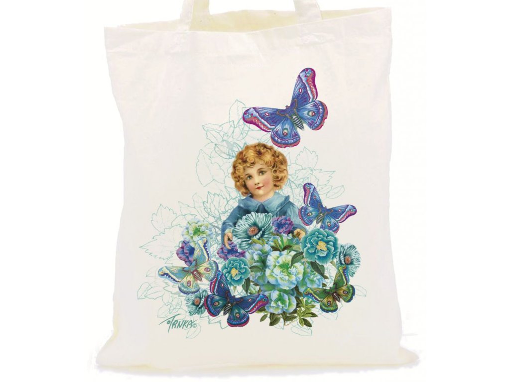 Plátěná nákupní taška, Dívka s motýly, DOPRODEJ