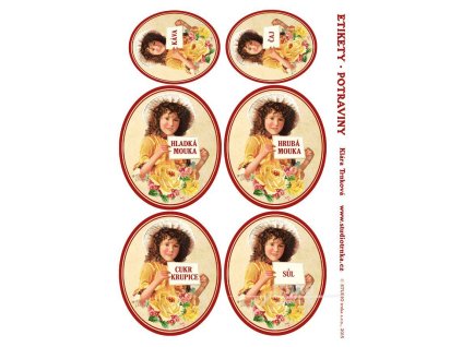 Samolepicí etikety na dózy s potravinami, čaj o páté, 2 archy