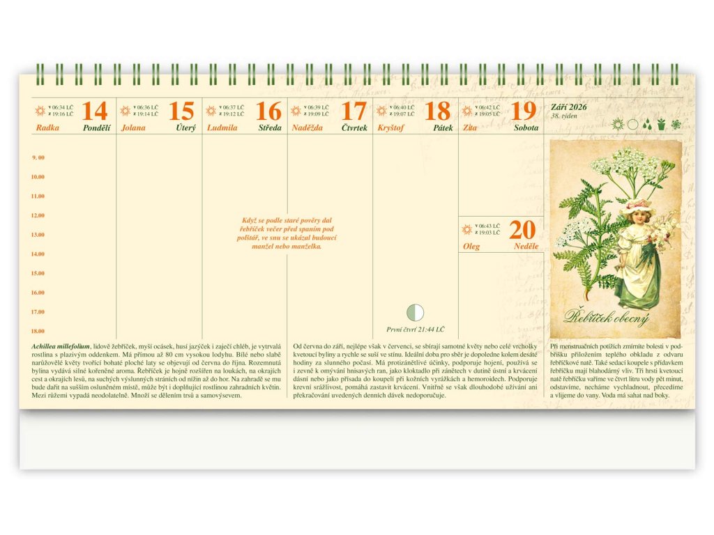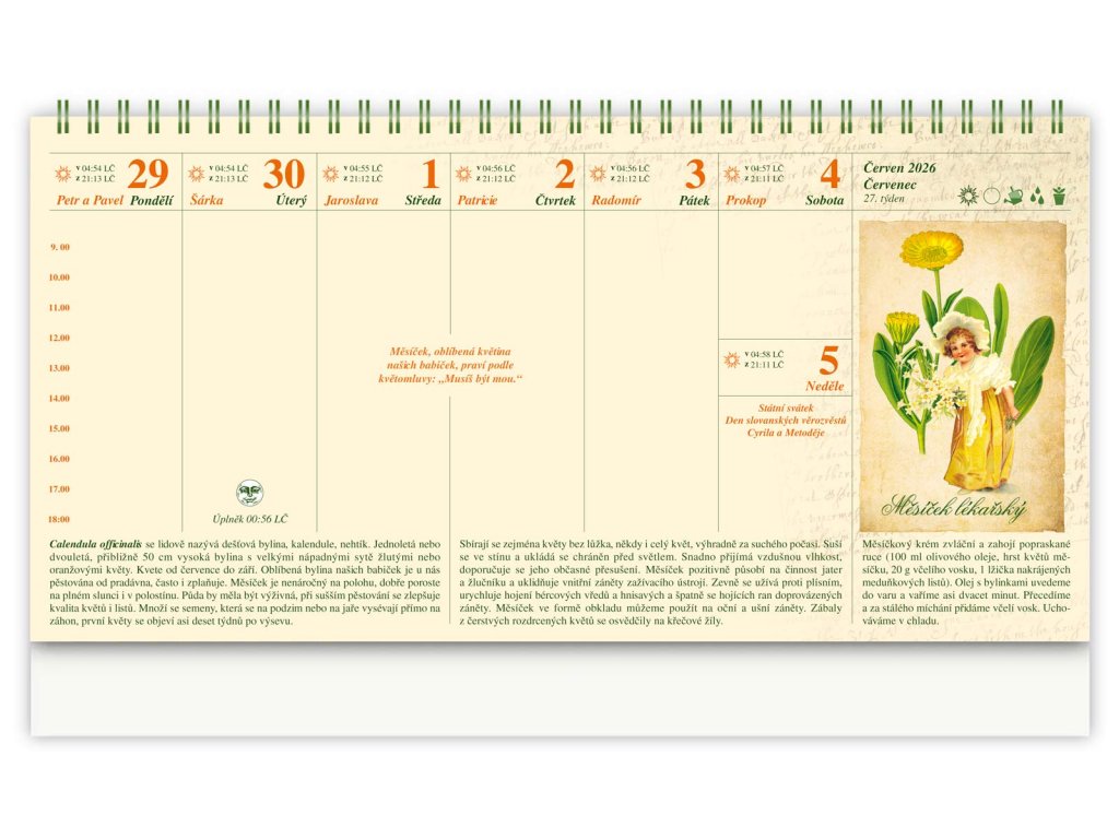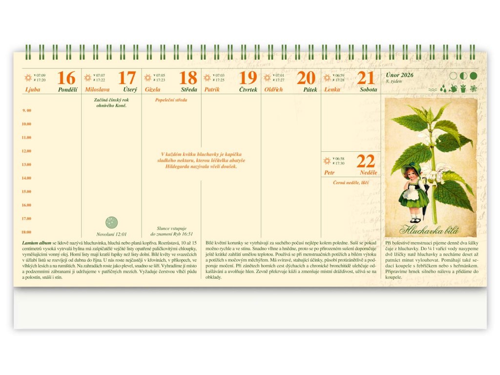 Stolní bylinkový kalendář 2026 báby kořenářky