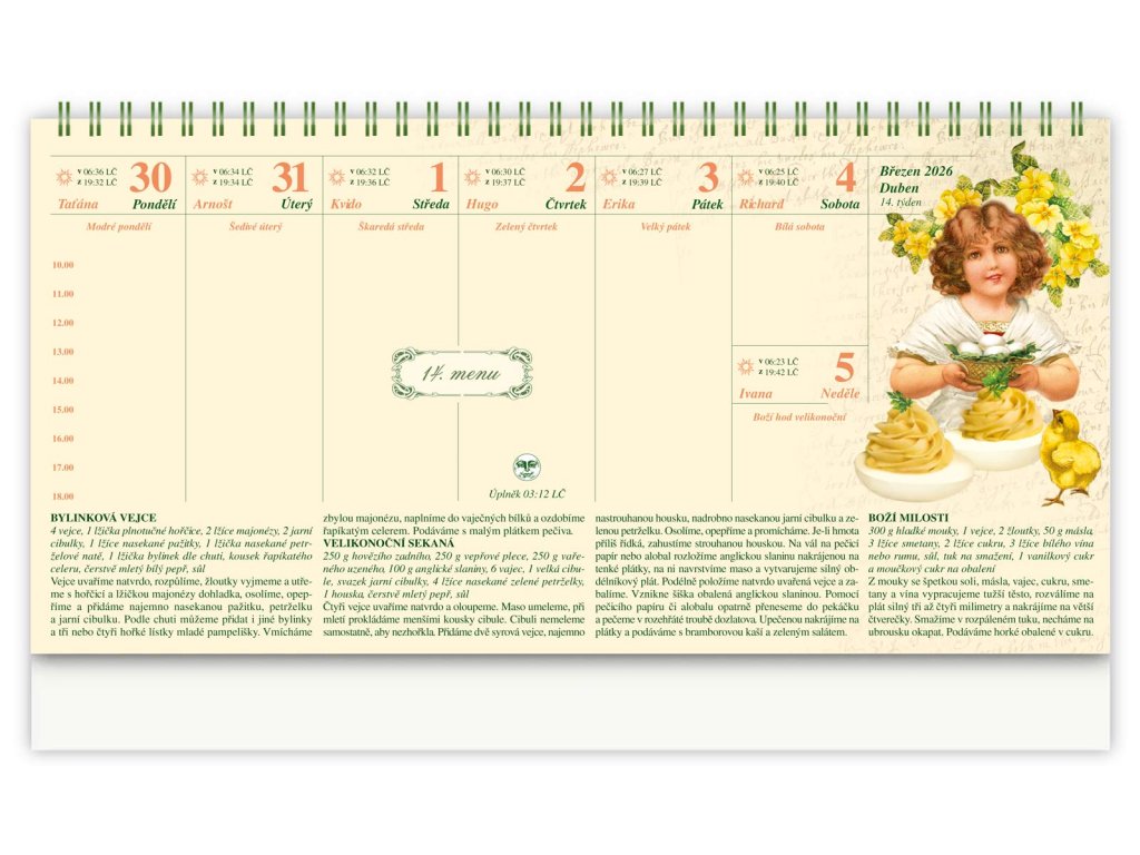Stolní kalendář 2026 – Nedělní menu