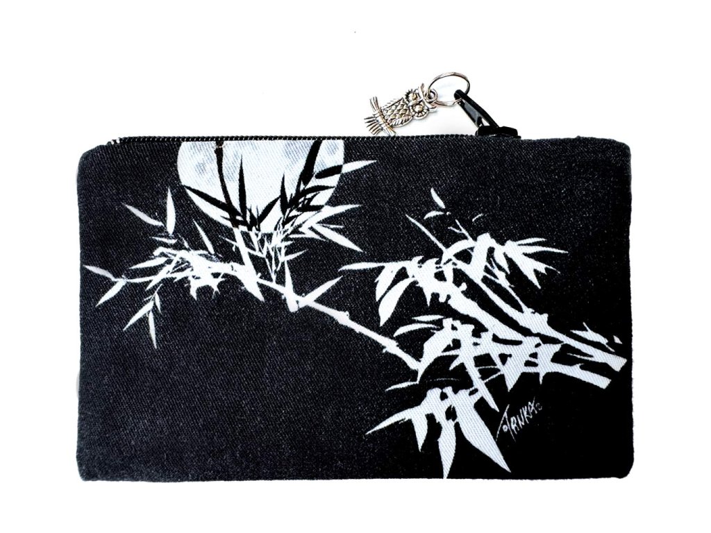 Bambus symbolizuje pevnost, vytrvalost a klid. Černobílé provedení dodává taštičce decentní noblesu, která se hodí ke každodennímu nošení i jako vkusný dárek.