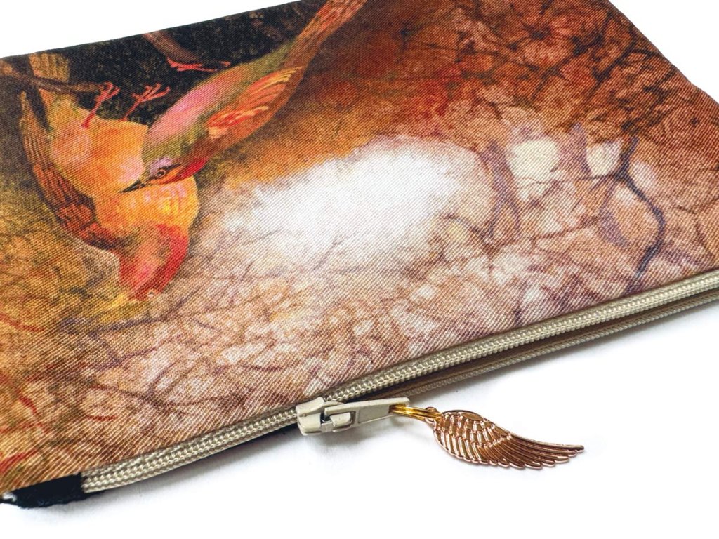 Motiv „Podzimní ptáčci“ je ideální pro ty, kdo milují přírodní motivy a barevnou proměnu ročních období. Taštička je praktickým pomocníkem i poetickým doplňkem – hodí se na drobnosti do kabelky, kosmetiku i jako milý dárek.