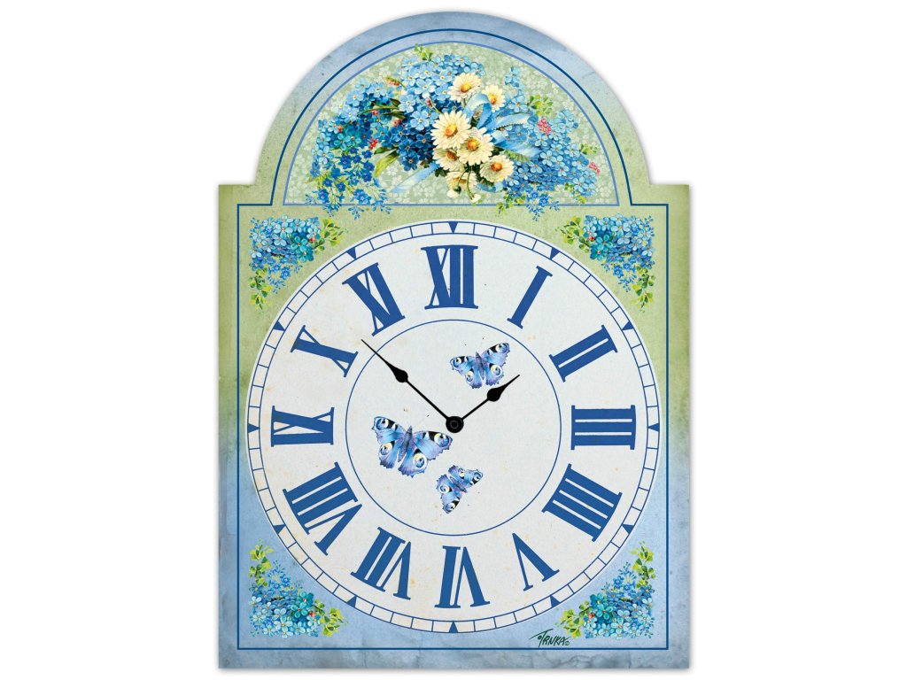 Velké dřevěné selské hodiny - Pomněnky a sedmikrásky