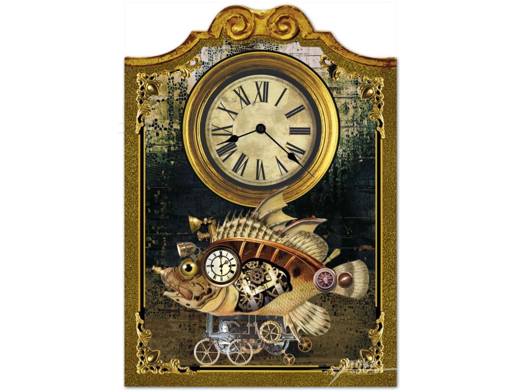 Velké nástěnné dřevěné hodiny - Steampunk, Létající ryba