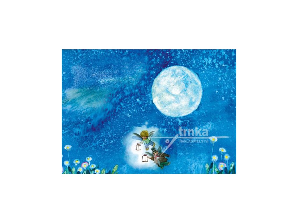 Je krásná temná noc a za oknem letí svatojánští broučci. Otevírací pohlednice z ilustrace Jiřího Trnky, potěší malé i velké, zvláště když ještě na zadní stranu připíšete nějaké vlastní přání.